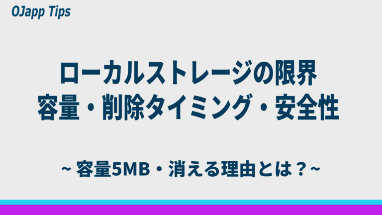ローカルストレージの限界とは?容量・削除タイミング・安全性を徹底解説 最終更新:2026/02/02 スマホやブラウザで動く Webアプリは、ユーザーの設定や状態を保存するために localStorage(ローカルストレージ) をよく使います。 しかし実際には、 「localStorage は無限に使えるわけではない」 「iPhone が勝手にデータを消してしまう」 などの“限界”や“落とし穴”が […]